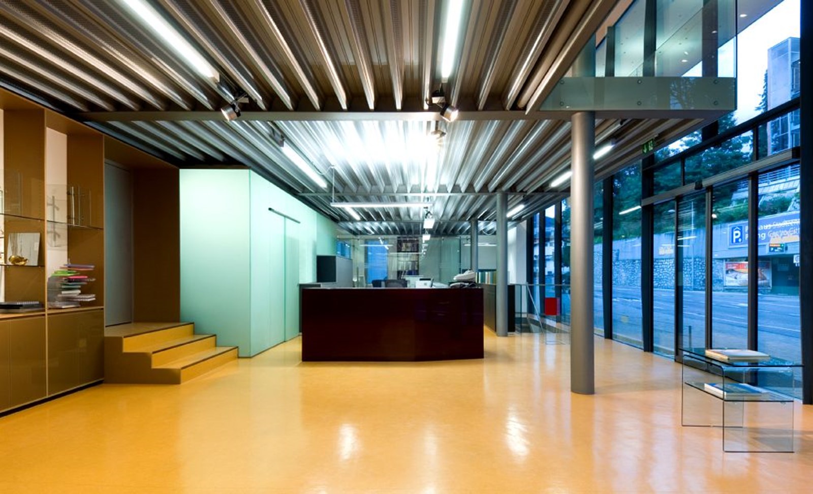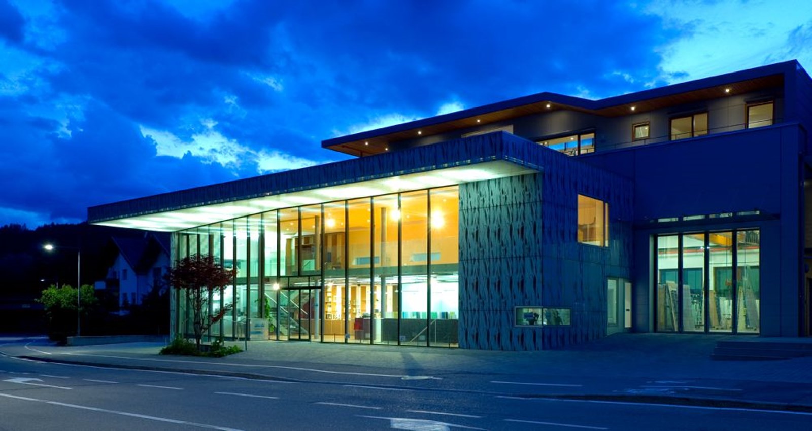 Ab 2002 wurde der Sitz von Seyr Glasbau in vier Bauabschnitten umgebaut und erweitert, während der Betrieb weiterlief. Zuerst wurden Werk- und Lagerräume im Untergeschoss vergrößert und mit neuer Rampe erschlossen, dann Werkhalle verdoppelt und Verwaltungstrakt neu gebaut. Nach Übersiedlung in die erweiterten Bereiche folgten Abbruch alter Verwaltungsteile und ein neues Treppenhaus mit Aufzug. Schließlich entstand über der Halle eine Betriebswohnung in Holzbauweise als Niedrigenergiehaus, abgeschlossen 2008. Das Gebäude an der Stegenerstraße gliedert sich in drei Baukörper: kristalliner Verwaltungs- und Ausstellungstrakt zur Straße, dahinterliegende Werkhalle mit abgesenktem Werkhof und die aufgesetzte Wohnung. Ein verglastes Treppenhaus verbindet alle Teile. Die Fassade, gestaltet mit Wilma Kammerer, kombiniert sechs Meter hohe Siebdruckverglasung, silberne Stahlpaneele und Swisspearl/ Lärche an der Wohnung. Innen prägt ein kräftiger orangefarbener Linoleumboden das Farbkonzept, ergänzt durch MDF-Möbel, Glaswände und hochwertige Einrichtung. Hochwertige Dämmung und Verglasung sichern hohe energetische Standards, die Wohnung nach Klimahaus B zertifiziert.