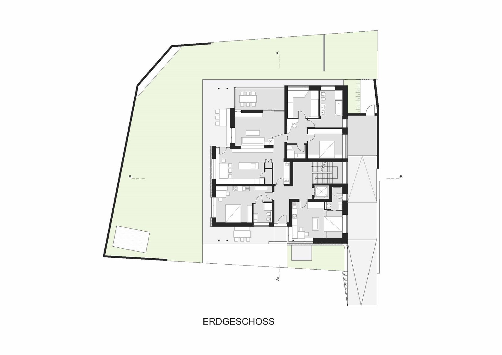 Das neue Gebäude vereint Funktionalität und Wohnkomfort. Es beherbergt drei eigenständige Wohnungen für die Besitzerfamilie sowie fünf flexibel nutzbare Ferienwohnungen, die bei Bedarf miteinander verbunden werden können. Auch die Hauptwohnungen in den oberen Geschossen lassen sich unkompliziert mit den Ferienwohnungen zusammenlegen, wodurch eine Anpassung an unterschiedliche Nutzungsszenarien möglich ist.